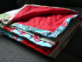 Danke für Euer Lob, da freue ich mich! Die Stoffe habe ich mal in USA bestellt, eigentlich wollte ich sie nicht zusammen verwenden, aber dann hat's mir so gut gefallen. Tatsächlich sind es 5 verschiedene Muster. Gequiltet habe ich immer neben der Naht. Der weiße und rote Stoff sind alte Bestände von dem Schweden!