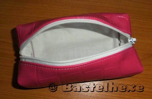 Schnittmuster gibt es viele für so eine Tatü-Tasche. Ich wollte eine mit Reißverschluß, so wie bei einer Kosmetiktasche - eben nur in Miniform. Ein Tatü-Paket herausgeholt, abgemessen, kurz überlegt und zugeschnitten. Ein Viereck für außen mit meinem tollen Kunstleder, ein Viereck für innen mit altem weißen Leinen. Normal nimmt man für solche Arbeiten einen Endlosreißverschluß. Hatte ich natürlich nicht, also mußte ein einfacher aber dafür längerer Reißverschluß herhalten. Hauptsache ich hatte rechts und links genug Überstand, der mir zum arbeiten Platz ließ. Es paßte alles und so kann ich euch meine neue Tatü-Tasche vorführen.