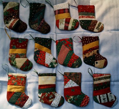 Die kleinen Stiefelchen sind 9x11 cm, die größeren 13x16 cm. Sie sind für einen Weihnachtsbasar angefertigt und natürlich zum Befüllen geeignet!