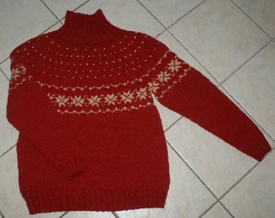 Ist zwar absolut nicht perfekt, weil ich irgendwie das Strickschrift lesen verlernt habe und statt zwei Maschen zusammen stricken habe ich eine übergezogen , aber dafür dass ich alles umrechnen musste weil kleinere Nadeln und dünnere Wolle bin ich total stolz.