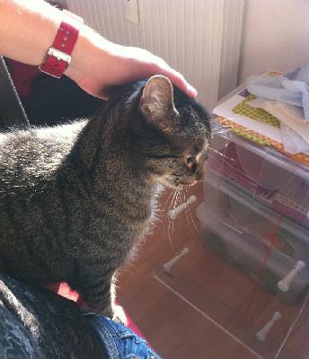 wollte euch mal einen Schnappschuss zeigen. Macht es nicht noch mehr Spaß zu nähen, wenn ein süßer Kater einem den Rücken wärmt?