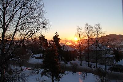 Das habe ich um 9.10 Uhr vom Küchenfenster aus aufgenommen.Sonnenaufgang über dem Drammensfjord.