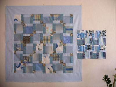 Wir haben uns an etwas Einfaches gewagt, damit sie nicht gleich die Lust verliert. Ein Kissen und eine Tischdecke in der Disappering Ninepatch - Technik. Und unsere (ihre) Ergebnisse können sich schon sehen lassen.