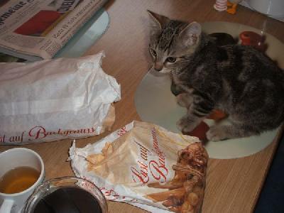 doch nicht die arme Katze, die ist zwar zum Fressen süß aber nicht fürs Frühstück