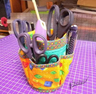 seit heute Nachmittg habe ich auch einen. Schön in leuchtenden Farbe, damit ich ihn auch nicht aus den Augen verliere. Die Borte, die ich als Verzierung genommen habe, habe ich schon seit mindestens 23 Jahren. Jetzt kam sie gut zum Eiinsatz. Bitte sehr: