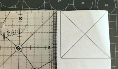 Ich hab mir ein Quadrat von 6,5 x 6,5 cm mit entsprechenden Diagonalen auf ein Blatt gezeichnet.