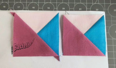 Genauso könnt ihr auch 4-farbige Quadrate trimmen. Den roten Edding-Strich könnt ihr nach getaner Arbeit wieder abwaschen.