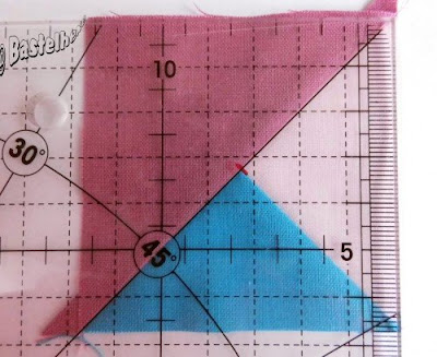 Bei dem neuen Projekt muß ich immer wieder ganz viele dreifarbige Quadrate auf das richtige Maß trimmen. Damit ich jedes Quadrat nicht 150ig mal in die Hand nehmen und immer wieder nachmessen muß habe ich mir einen gut umsetzbaren Trick ausgedacht.