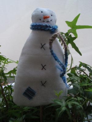 hab mir mangels Schnee selber einen Schneemann genäht. Und da ich gerade dabei war, machte ich Inventur, d.h. ich bin eigentlich bei den Restestreifen von dem nichtfertigen Quilt meiner Tochter hängen geblieben und hab ein Kissen gemacht.