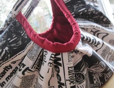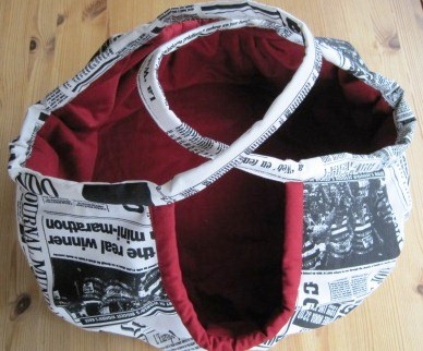 @swisspatch - es ist eine Anleitung aus Len's Patchwork: "wundervolle Patchworktaschen" gab es glaube ich im August 2012. In der Originalanleitung wurden verschiedene Stoffe mit Spitze verabeitet. Fand ich für mich jetzt nicht so schön, wollte meinen Zeitungsstoff verarbeiten.