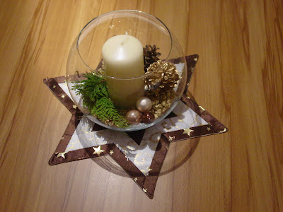 gestern habe ich mir einen neuen Stern..der steht/liegt (wie sagt man das???) unter mein gesteck was ich auch noch gestern gemacht habe..