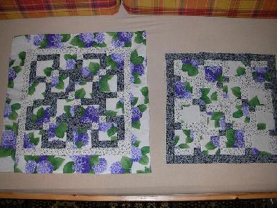 Und aus dem gleichen Stoff 2 Tischdecken. Eines für meine Eltern, eines für Schwiegermutti. Da weiß ich noch nicht, ob ich auch den großgemusterten Stoff drumherum oder weiß als Rand nehmen soll.