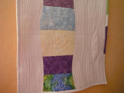 Hab ich auch so gemacht, jedes Rechteck hatte ein Vlies und eine (einfache) Rückseite. Dann wurden die Muster geübt, alles zusammengesetzt und dann hab ich noch ne komplette Rückseite drüber. So, jetzt such ich auch mal nach Fotos...