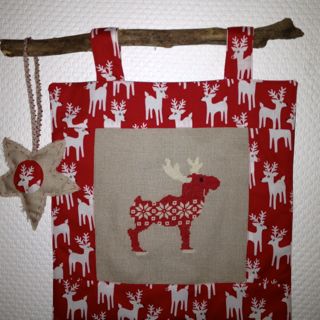Wir patchen und sticken natürlich was das Zeug hält, um den Kunden zu zeigen, was man alles machen kann. Zur Zeit hab ich mich in den Elch "Lasse" von Mikusch Design verliebt. Ich habe die Stickarbeit umpatcht und jetzt hängt er zur Ankündigung der Eröffnung im Fenster.