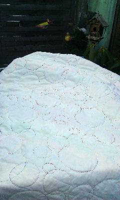 und hier ein Bild von der Rückseite. Hier kann man die gequilteten "Seifenblasen" recht gut sehen.