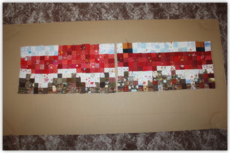 Stecken und nähen werde ich zu 20 x 10 Quadrate,