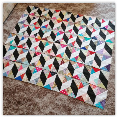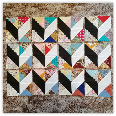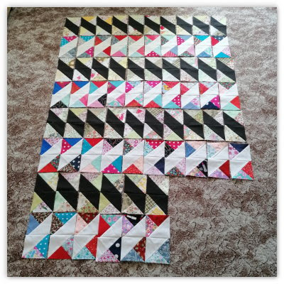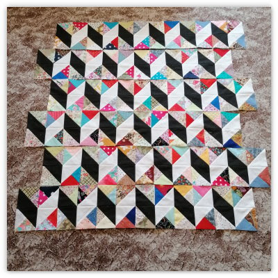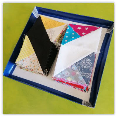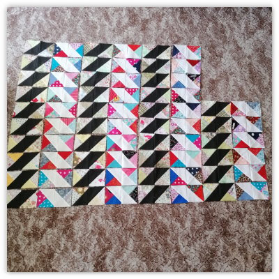 Mittlerweile habe ich je 36 dieser Halbblöcke genäht.