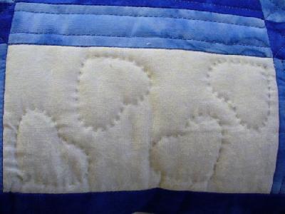 Das Kissen ist für Mamas Freundin Paula zum 75. Geburstag. Ihr Lebenspartner ist letztes Jahr 2 Monate nach meinem Papa gestorben. Das Kissen ist 18" x 18" gross und maschinen- u. hangequiltet