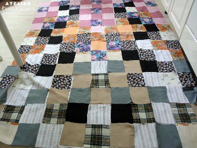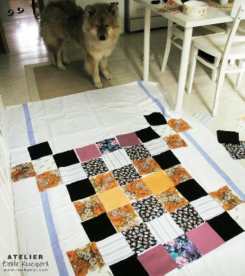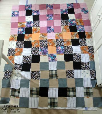 | Schön ist dein Top geworden. Ich kann mir da einen weißen Rand ganz gut vorstellen, kommt ja auch schon im Top vor. Nur hoffentlich ist das Laken nicht zu strack, denn dann wirds fürs Binding problematisch bei der Verarbeitung. |
