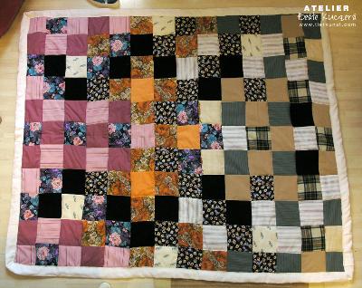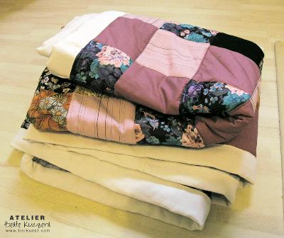 Das Binding ist aus einem alten weissen Bettlaken, wie ich es vorhatte. Also ist der Quilt 100% Oma )
