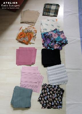 Habe 165 Quadrate geschnitten... gestärkt mir Sprühstärke da eiiniges dünne Blusen oder Röcke waren etc... anderes dann wieder dicke Flanellhose und so...