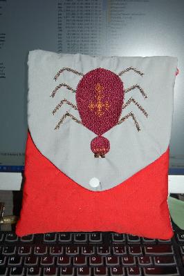 Die Eule habe ich nach Monate langem üben in meinem Embird digitalisiert und ich finde sie wurde ganz ok, genau wie die Spinne die ich auch noch selber zeichnete und dann digitalisierte. Die Eule ist aus den Cliparts von Corell Draw.Bei Viecherl habe ch dann zu kleinen Taschen, bzw Utensilo verarbeitet.