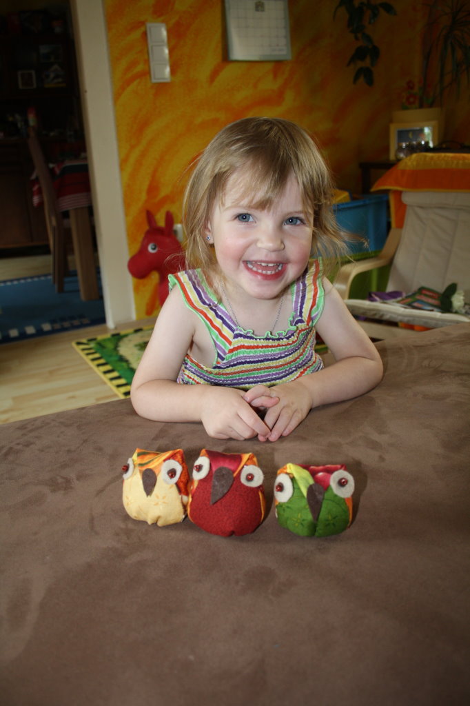 Meine Maus wollte nähen und da haben wir Eulen genäht... sie steht auf Eulen.
