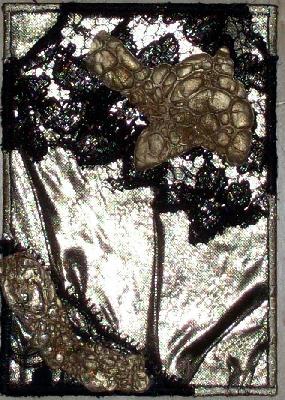 Und mein Goldrausch: Die Goldenen Gebilde sind ebenfalls Tyvek bemalt und beglittert auf Goldlamee´ und Spitze