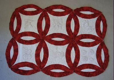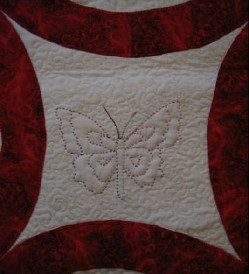 und noch ein Detail, die roten Motive sind mit der Hand gequiltet, das Drumherum mit der Maschine