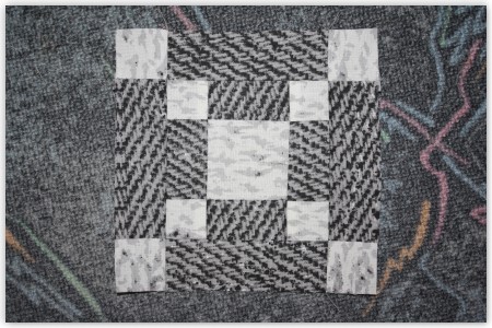Dieser Block hier ist aus Stückchen von einem Kissenbezug.
