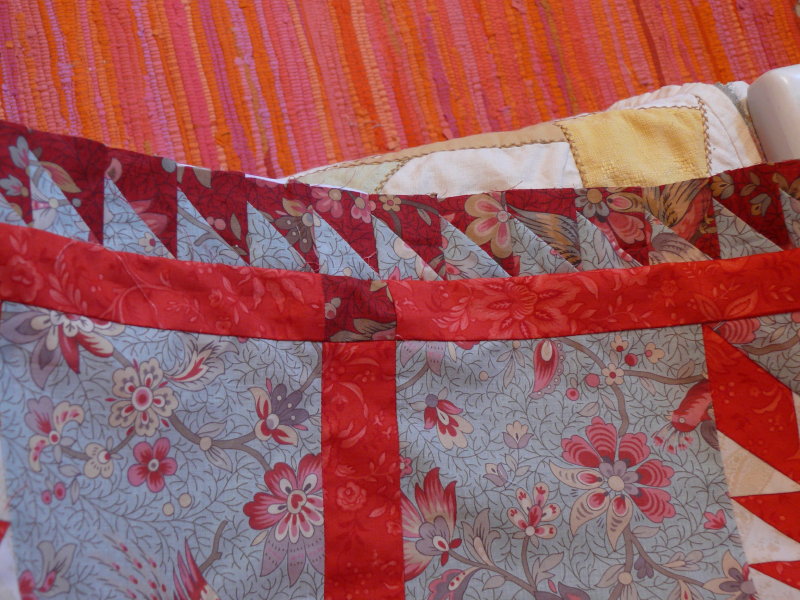 Heute habe ich den roten Streifen fertig annähen können.