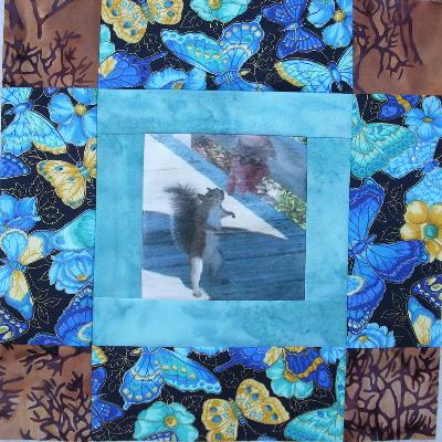 Vielen Dank für euer großes Lob - der Block, den ich jetzt vorstelle, ist nicht so aufwendig, aber die Geschichte mußte einfach mit in den Quilt und applizieren war mir einfach zu schwierig. Deshalb habe ich das Foto auf Stoff gedruckt.