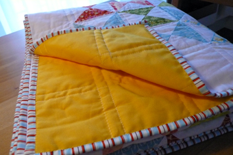 Der Quilt ist 170 x 170 cm groß und komplett mit der Maschine genäht. Bis auf das Binding, das ist wie immer mit der Hand geheftet. Mein Finger hat ein leichtes Loch, die Hornhaut vom letzten Mal war wohl nicht mehr ausreichend.