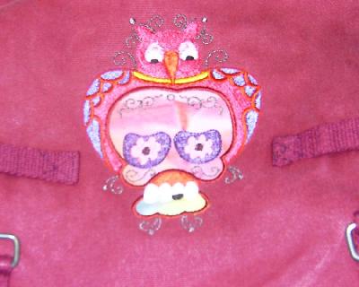 Ich habe eine Stickdatei vom "Stickbär" genommen und auf eine fertige Tasche gestickt. Der Kopf ist mit einem anderen Stoff appliziert.