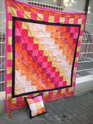 Das ist ein ganz toller Quilt mit einem schönen Kissen dazu geworden! Und echt superschöne Farben!  |