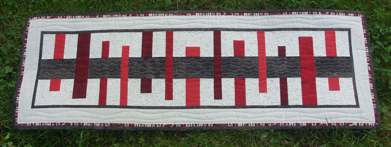 | Herrlich was so ein Quilting ausmacht. Ein toller Effekt. Dadurch dass die roten Streifen nicht gequltet wurden schaut es aus als schwebten sie frei im Raum. Sehr schön. |