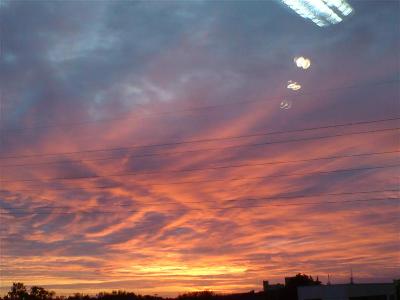 das ist meine aussicht beim nähen!das unten eine lkw -werkstatt ist ,darüber kann ich hinwegsehen!!im fenster spiegelt sich übrigens meine lampe-nicht ,dass ihr meint,bei uns würden ufos fliegen!