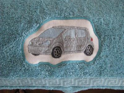 und das päckchen ,dass nicht von bollewulle war ,war von patchdaisy!!!schaut mal ,was dadrin war.erst hab ich gedacht :hm ein handtuch mit einem auto.... und dann:aah--MEIN auto!!!