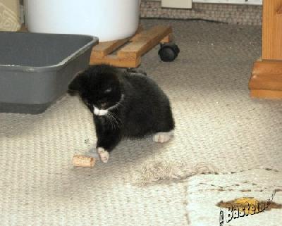 Spielzeug brauchten wir keines kaufen, er suchte es sich selber im Haus Am meisten fand er in Herrchens Arbeitszimmer. Wunderschöne dünne Elektrokabel, die man klauen und im ganzen Haus unter Teppiche und Türritzen schieben und verstecken konnte. Korken waren auch eine Leidenschaft von ihm. Die Drähte sind es übrigens heute noch.