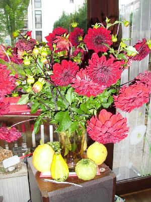 Guten Morgen mit einem tollen Strauß plus Zierkürbissen....den ich vom kessen Scherchen bekommen habe.