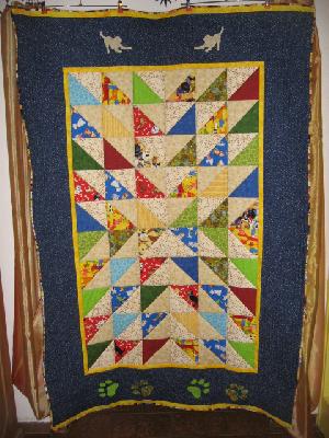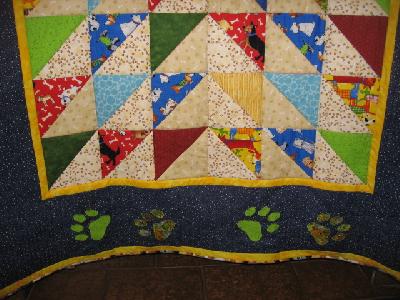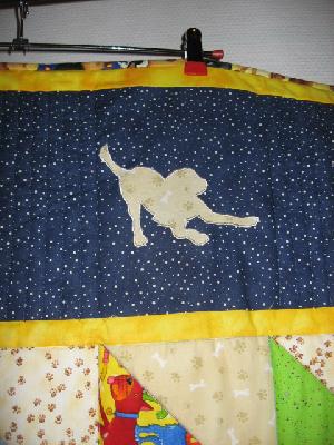 Dein Quilt gefällt mir sehr gut, auch daß die Ecken nicht alle in die gleiche Richtung zeigen, sondern so zentriert sind, mal was anderes. Da wird sich der Hund sicher sehr wohl darauf fühlen.