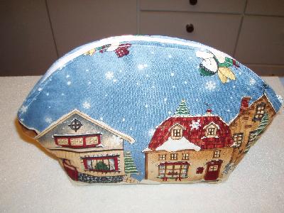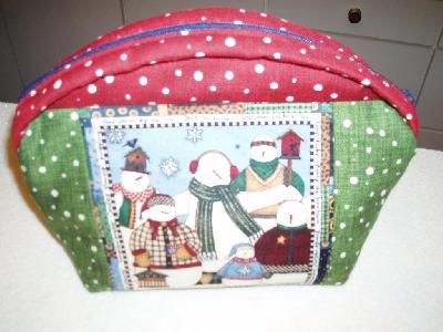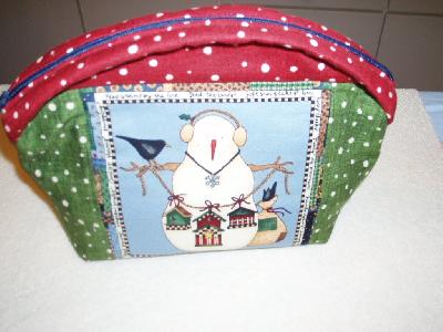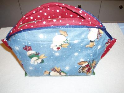 mit Weihnachtsstoffen gepatcht. Das Futter ist wieder der Schneemannstoff.
