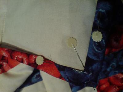 hallo !eine echte anfängerfrage:habe meine decke fertig bis aufs annähen des bindings hinten.das mache ich von hand und bin mir jetzt nicht sicher,welche farbe ich nehmen soll!also der rüchseitenstoff ist hellbeige und das binding ist an 2 seiten kräftig rot und an 2 seiten kräftig blau.nehme ich jetzt besser ein beiges garn oder rot bzw.blau damit man die stiche am wenigsten sieht?