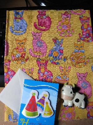 Von Gabi kamen diese tollen Katzenstoffe (nicht wundern dass es so viele sind - da ist der Geburtstagswichtel mit dabei