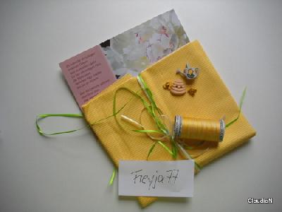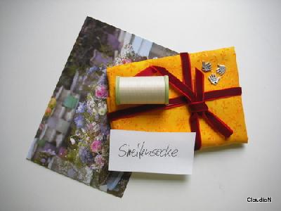 Die Stoffe sind alle wunderschön. Vielen Dank euch allen. Und auch die tollen Beigaben. ich musste jetzt extra eine größere Schachtel für meine Nähgarne raussuchen, damit all die schönen Farben Platz finden.