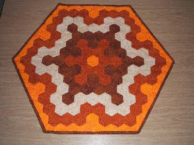 Das Geburtstagsgeschenk für meine liebe Stief-Schwiegermama ist (fast) fertig. Von Ecke zu Ecke misst sie 73 cm. Was da am Rand blitzt sind die Stecknadeln, ich muss das Binding noch umnähen.