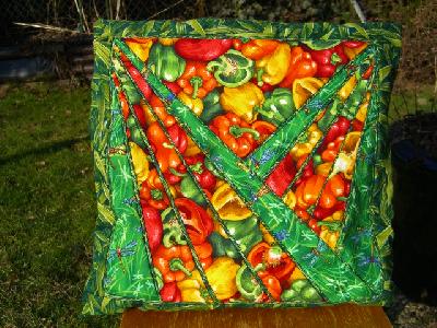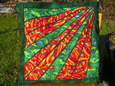 jetzt sind auch meine letzten zwei Gemüsekissen fertig. Der Stoff hat gerade so gereicht. Das Kissen mit den Peperoni gefällt mir am besten.