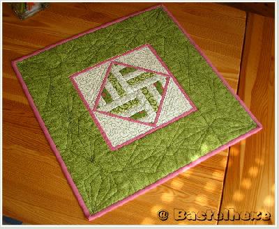Die gefällt mir auch sehr gut, shöne frühlingsmäßige Farben und auch sehr schön gequiltet. _________________ Gruß Bienenstich |
