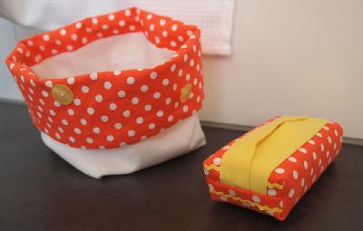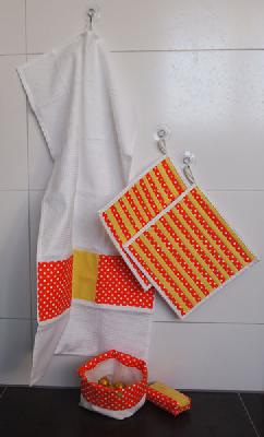 für meine Schwester habe ich zum Geburtstag diese zueinander passende Nützlichen Dinge genäht. Ihre Lieblingsfarben sind orange und gelb.