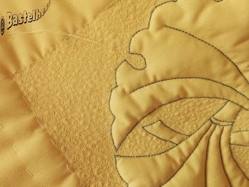Was soll ich sagen, ich bin mit meinem Erstlingswerk, was Trapunto und auch Freihandquilten betrifft absolut zufrieden. (ganz doll freu!!!). Ich denke, daß es gar nicht so schlecht geworden ist, nehme aber gerne noch Verbesserungsvorschläge (für's nächste Mal ) von euch an.